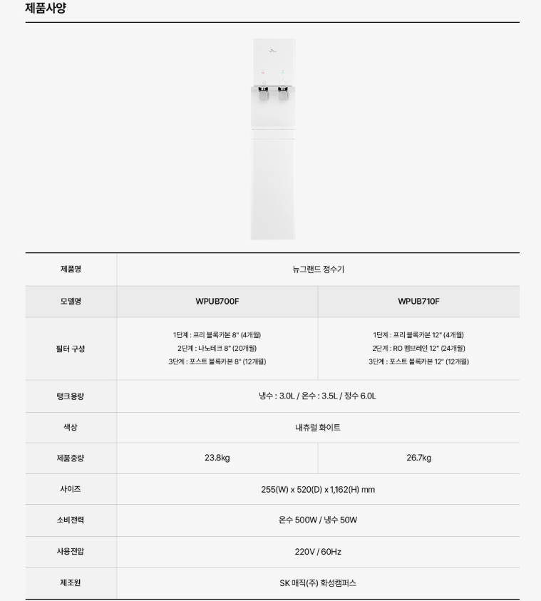 • [SK매직] 뉴그랜드 정수기 프리스탠딩(RO필터) WPU-B710F WPU-B710F
