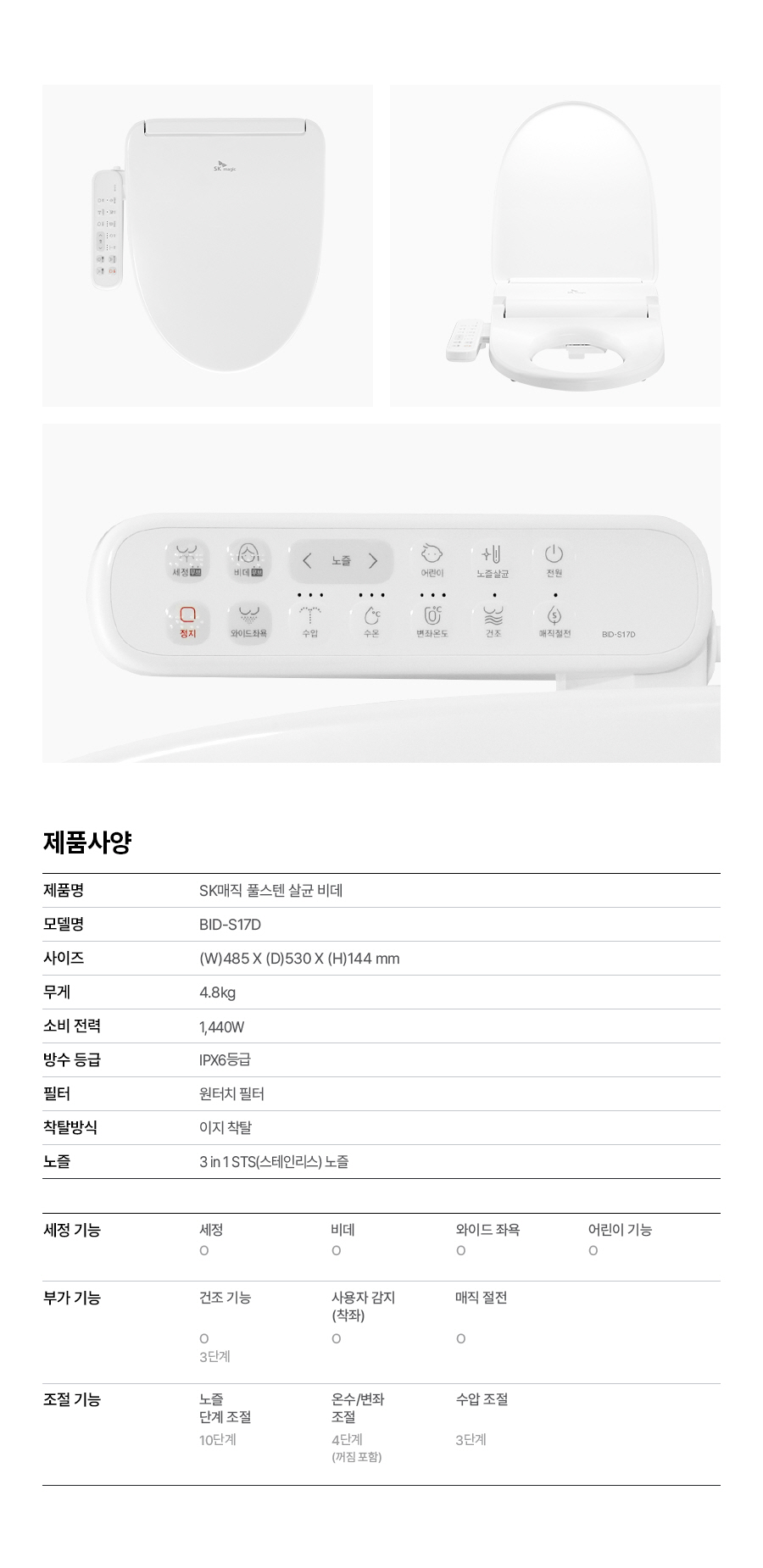 • [SK매직] [SK매직]SK매직 비데 렌탈 BID-S17D 풀스텐 살균 BID-S17D