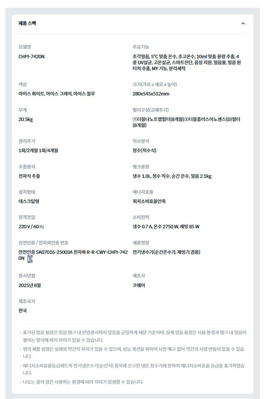 • [코웨이] 아이콘 얼음정수기 맥스 3가지색상 CHPI-7420N