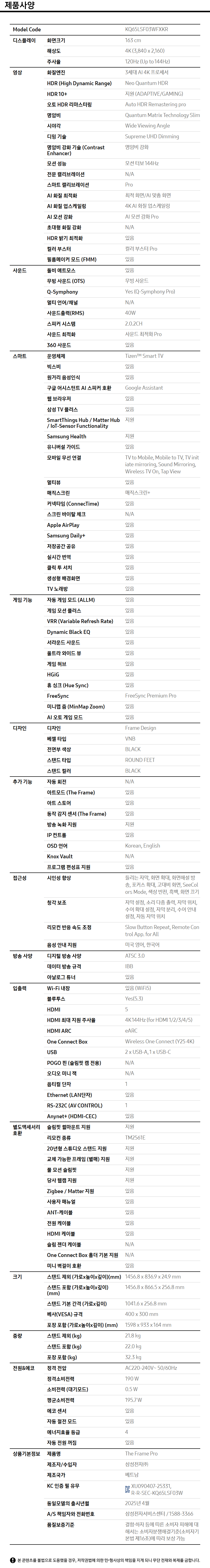 • [삼성] THE Frame TV PRO 65인치 KQ65LSF03WFXKR